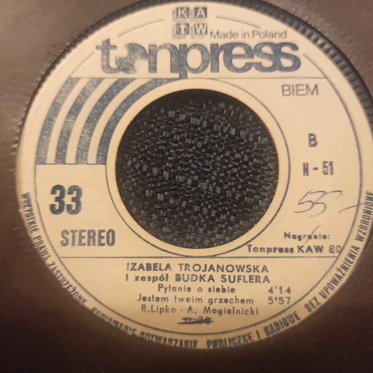 Pytanie O Siebie Izabela Trojanowska I Zespół Budka Suflera Kraj wydania: Poland Rok wydania: 1981 Nr cat: N-51 Wydawnictwo Tonpress