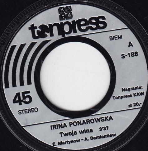 Twoja Wina Irina Ponarowska Kraj wydania: Poland Rok wydania: 1980 Nr cat: S-188 Wydawnictwo Tonpress