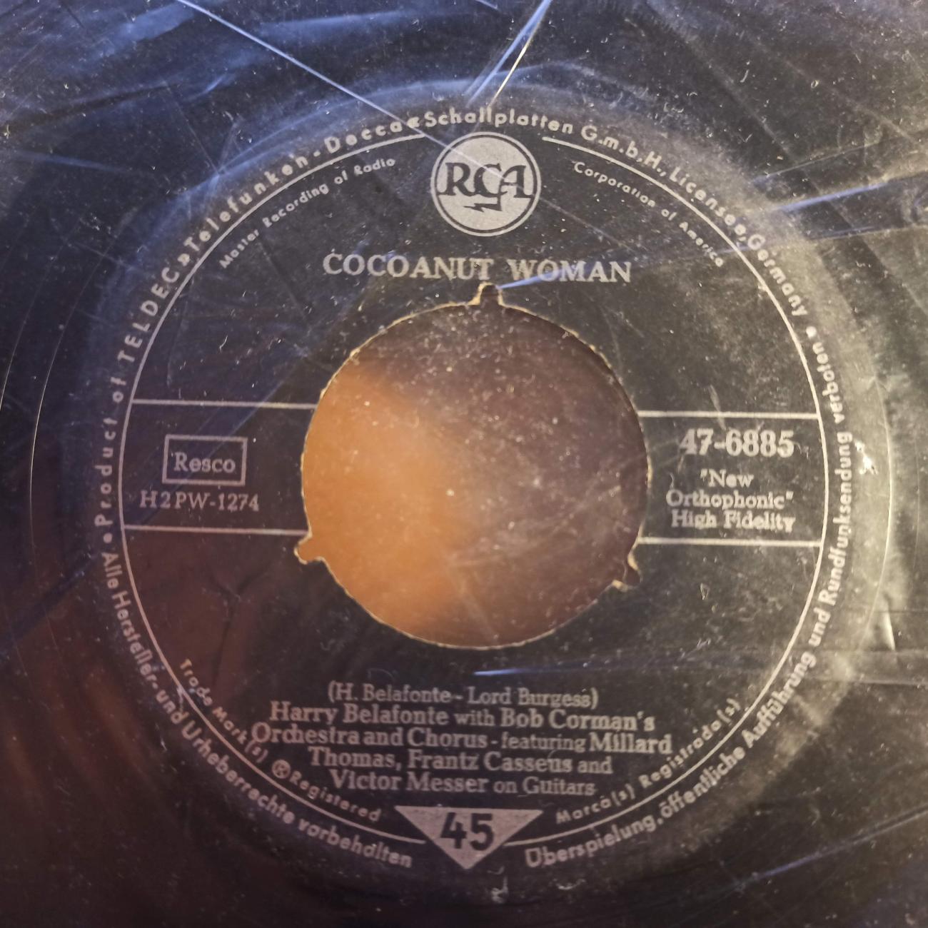 Cocoanut Woman / Island In The Sun Harry Belafonte With Bob Corman's Orchestra And Chorus Kraj wydania: USA Rok wydania: 1957 Nr cat: 47-6885