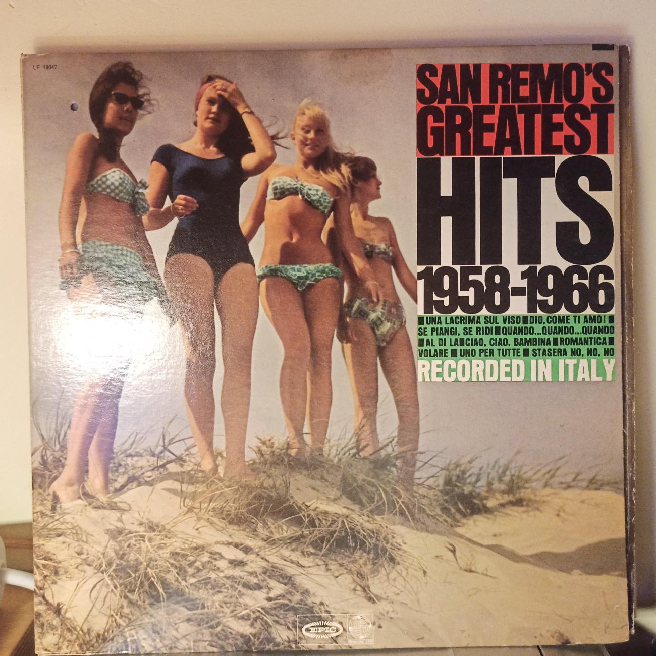 San Remo's Greatest Hits 1958 Various Kraj wydania: USA Rok wydania: 1966 Nr cat: World Wydawnictwo Epic